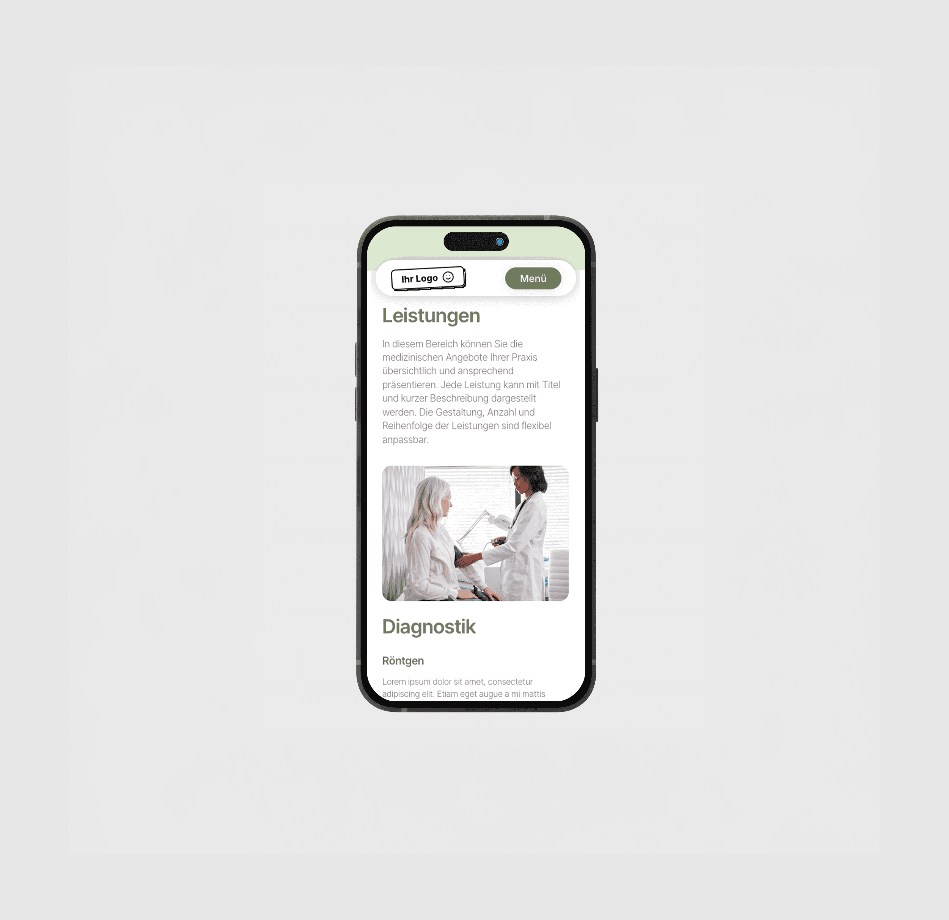 Eine vorgefertigte Lösung spart Zeit und Geld. Sie erhalten eine moderne, funktionale Website, die speziell für Arztpraxen entwickelt wurde, professionell wirkt und einfach zu pflegen ist. Gleichzeitig bleibt Raum für Individualität – ohne den Aufwand eines kompletten Neubaus.